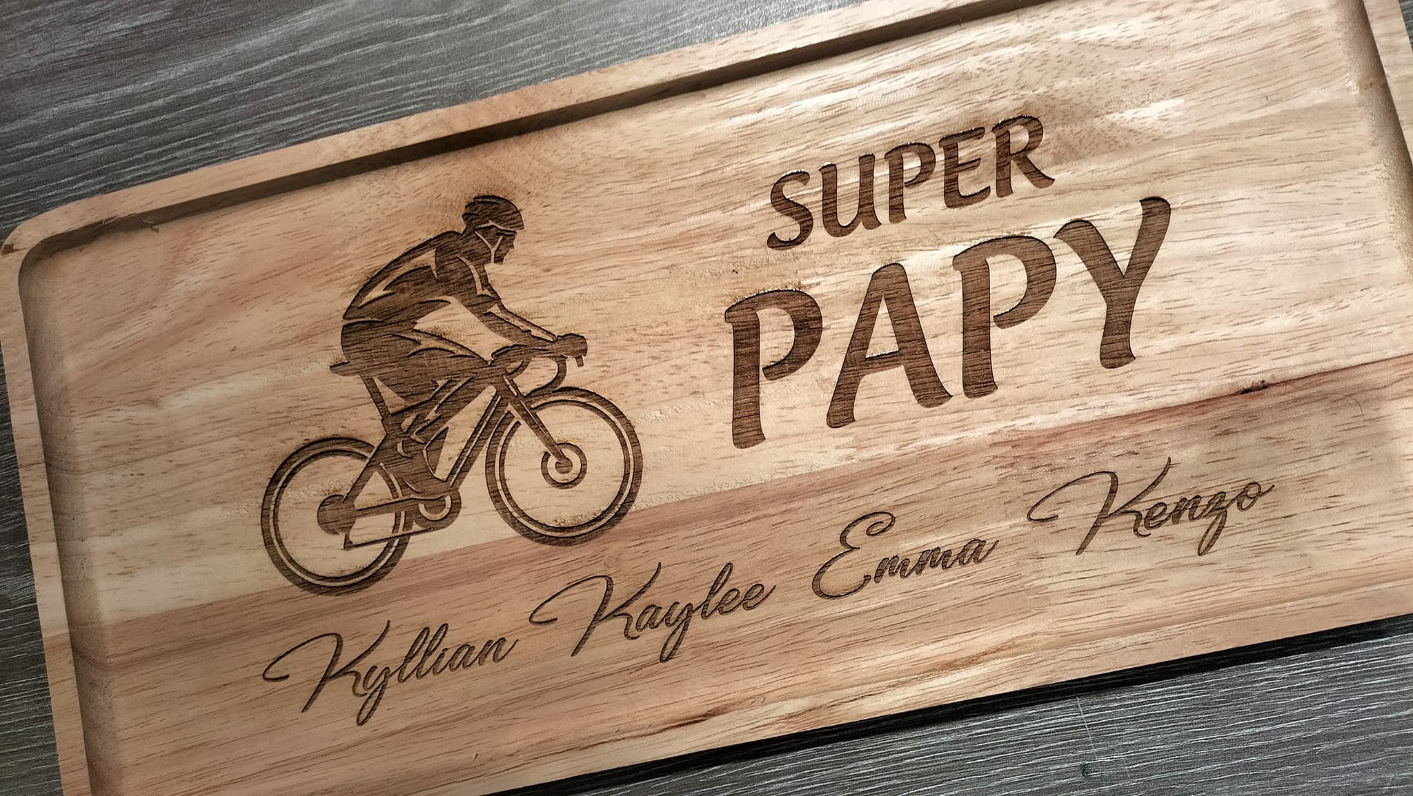 Offrez un cadeau à la fois pratique et plein d’émotion avec ce plateau en bois personnalisable.