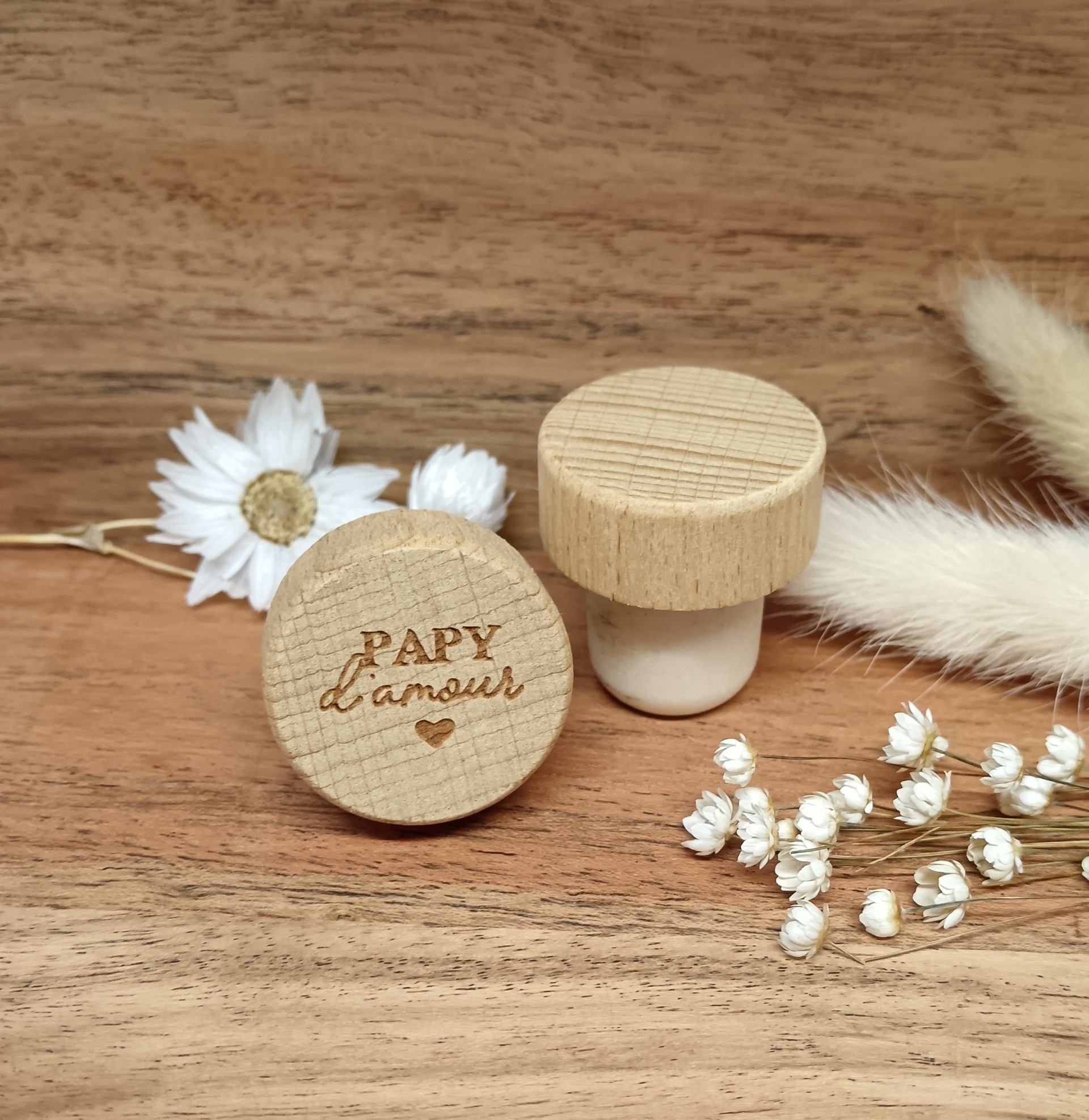 Bouchon en bois et liège personnalisable – Papy d'amour (cadeau original et pratique)