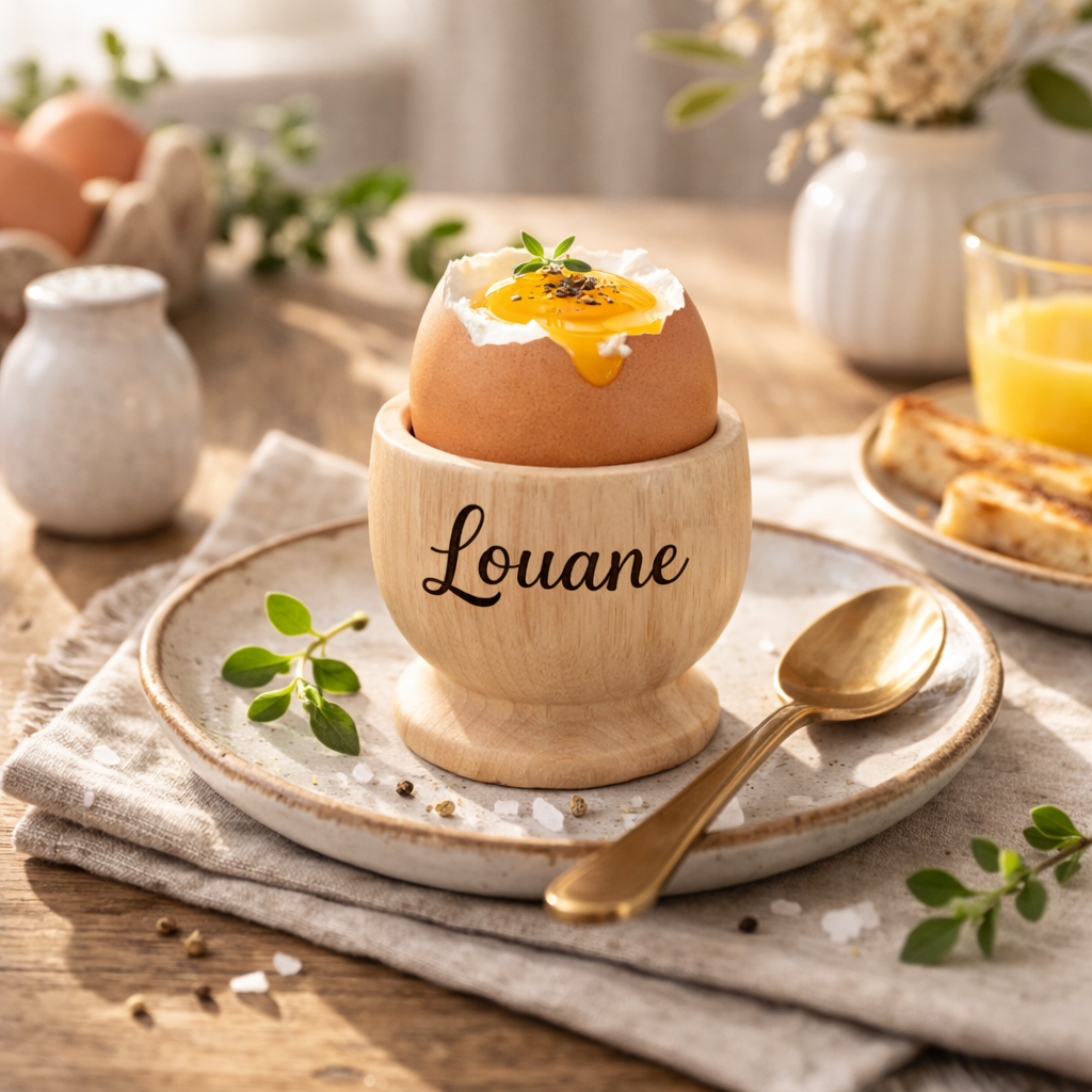 Craquez pour ce joli coquetier en bois personnalisé avec le prénom de votre choix ✨