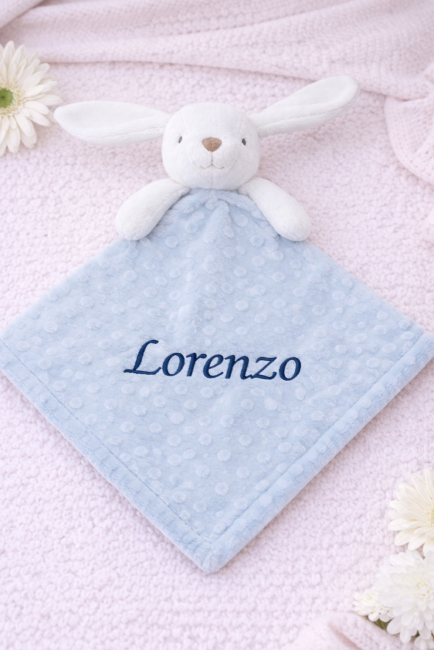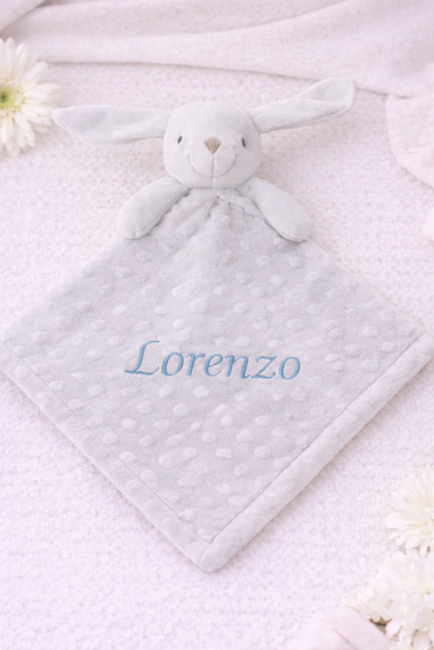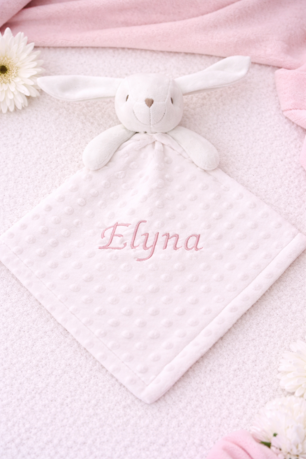 Craquez pour ce magnifique doudou lapin personnalisé, un indispensable tout doux pour accompagner bébé dès ses premiers instants 💕