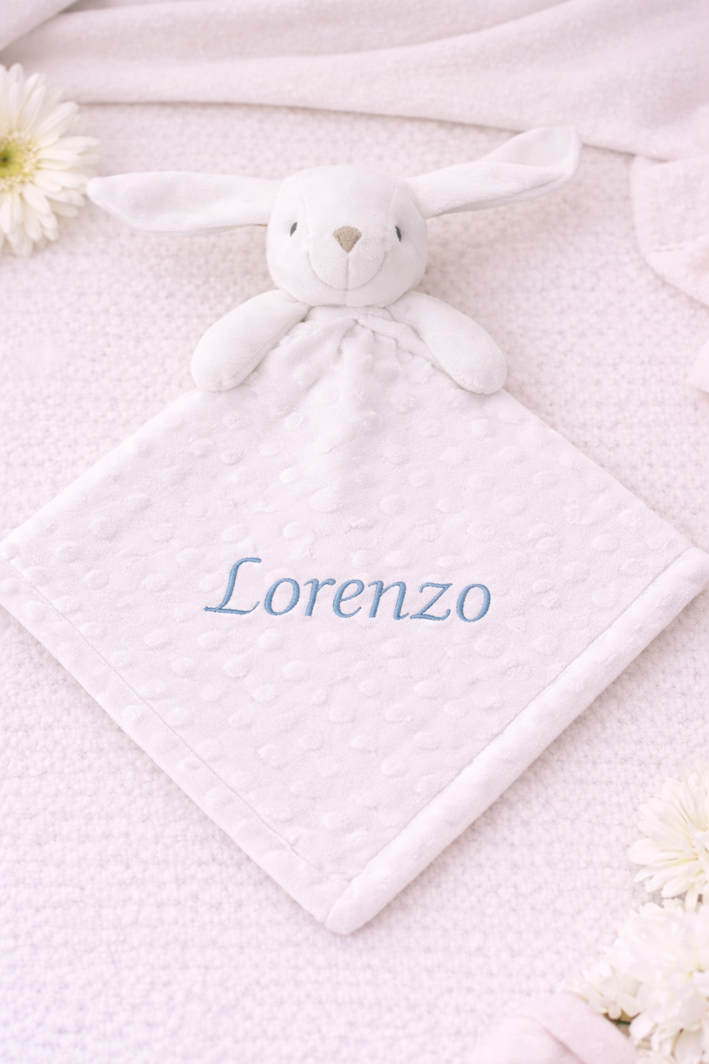 Craquez pour ce magnifique doudou lapin personnalisé, un indispensable tout doux pour accompagner bébé dès ses premiers instants 💕
