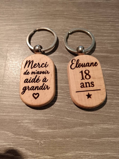 Porte-clés en bois personnalisable – Gravure sur-mesure (prénom, message ou motif) modèle2