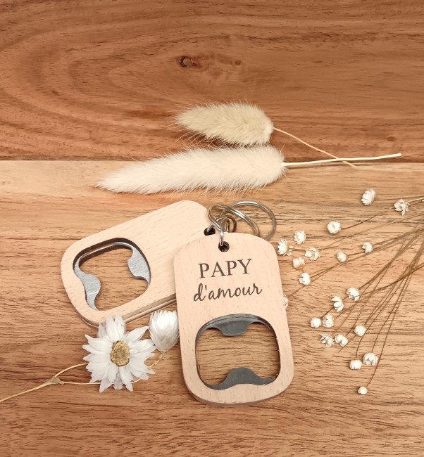 Bouchon en bois et liège personnalisable – Papy d'amour (cadeau original et pratique)