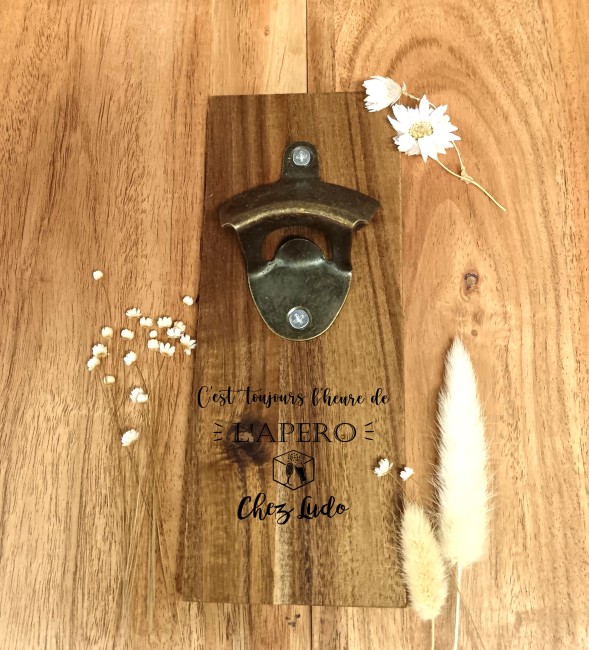 Décapsuleur mural en bois – Ouvre-bouteille vintage à fixer – Accessoire bar, cuisine, cadeau homme, fête des pères