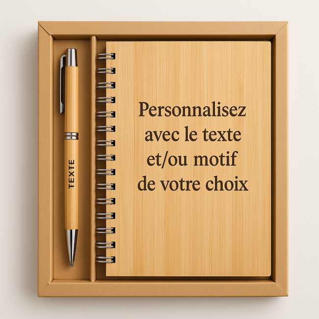 Carnet en bois personnalisable avec stylo – Gravure sur-mesure (cadeau unique et élégant)