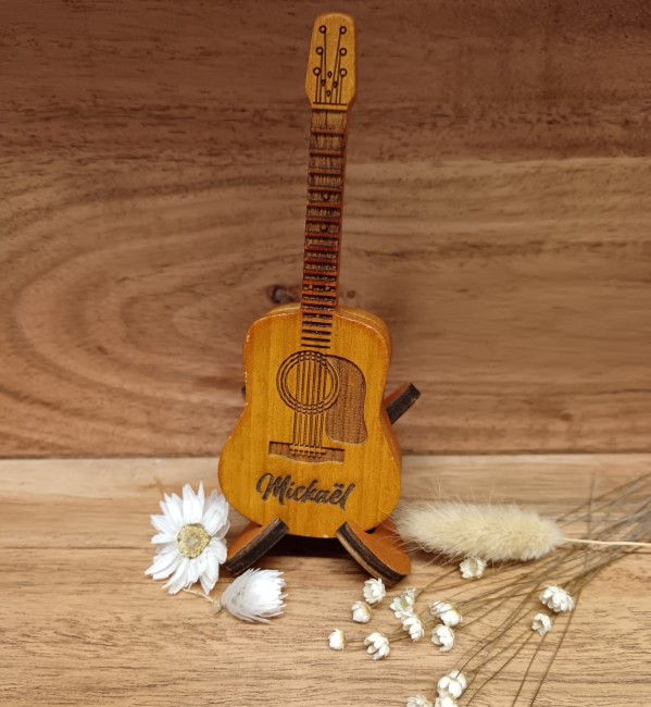 Mini guitare en bois personnalisable avec médiators – Coffret cadeau original pour musicien