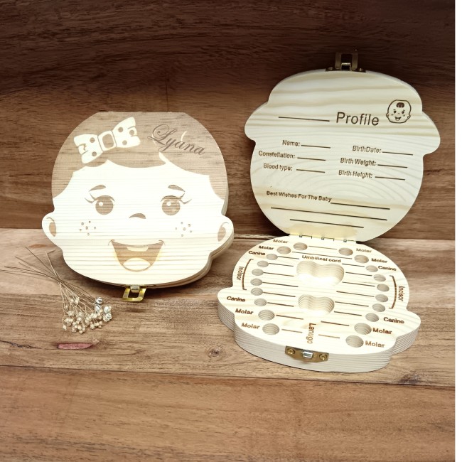 Boîte à dents de lait en bois personnalisée – fille, Coffret souvenir enfant – Gravure prénom