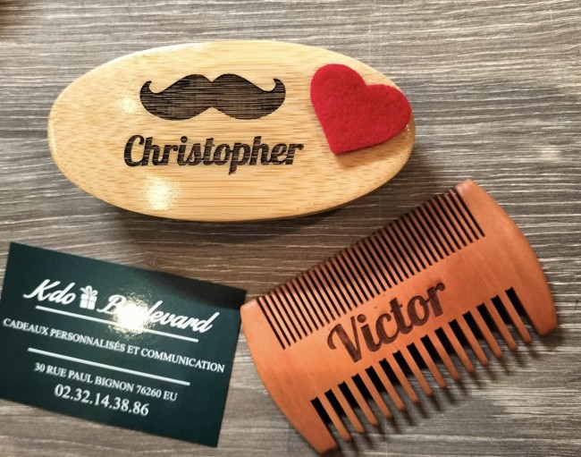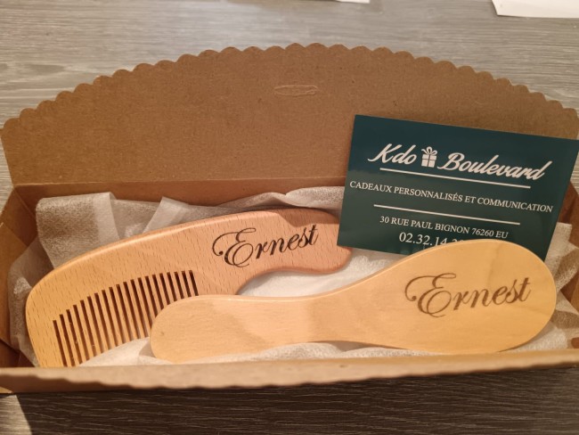 Coffret brosse et peigne en bois personnalisables – Gravure sur-mesure (prénom, texte ou motif)