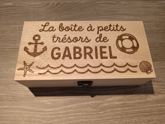 Boîte à trésors en bois personnalisable – Gravure prénom & motif