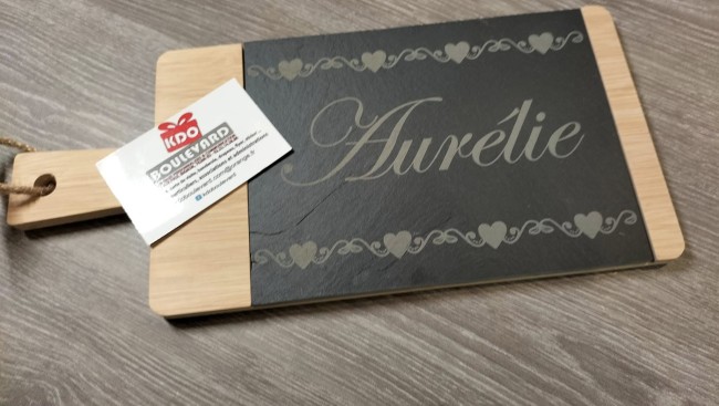 Planche à découper personnalisée en ardoise et bois – Gravure prénom