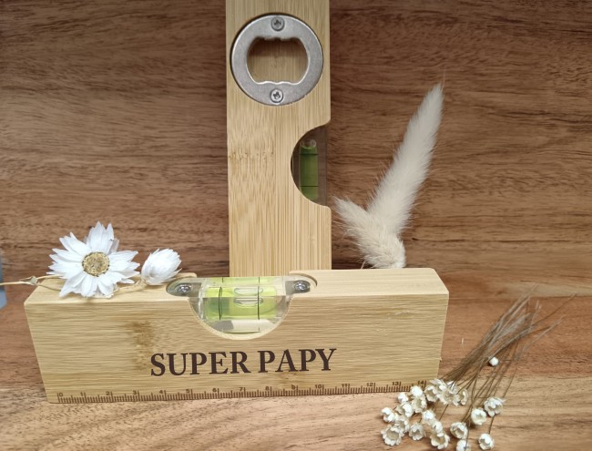 Niveau en bois personnalisable – Multifonction avec décapsuleur et règle