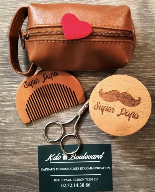 Set de soins barbe personnalisable – Peigne, brosse, ciseaux & trousse