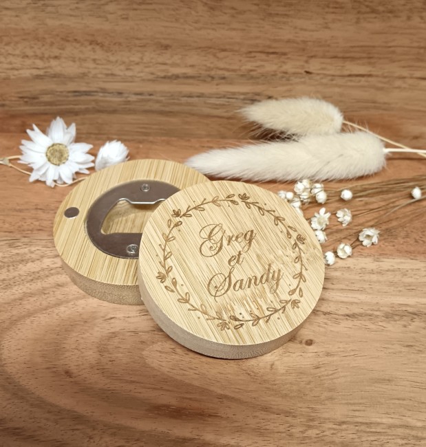 Décapsuleur rond en bois personnalisable – Gravure sur-mesure (Ø 6,5 cm)