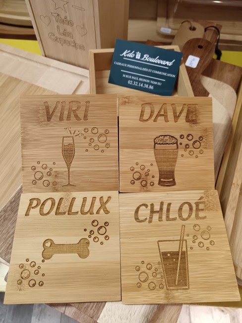 Dessous de verre en bambou personnalisables – Gravure prénom ou texte – Cadeau original et écologique
