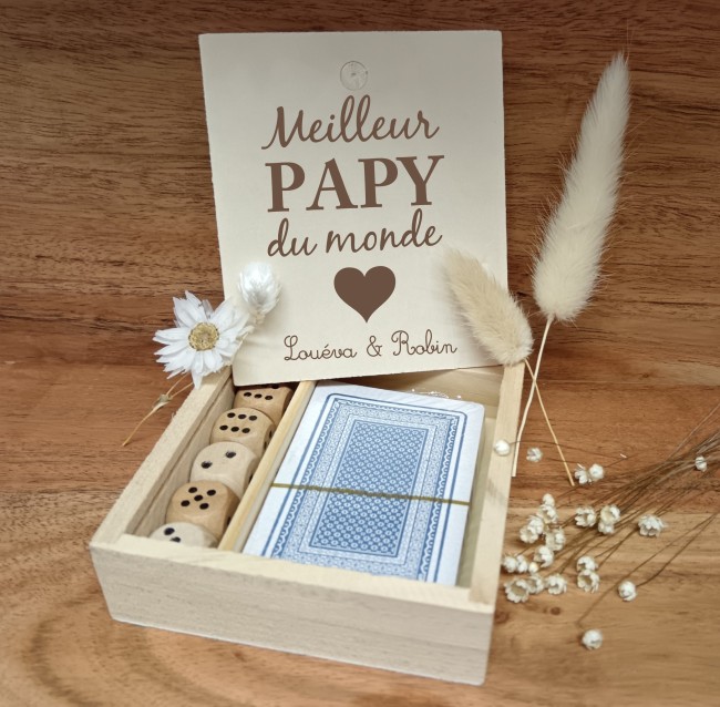 Coffret de jeu en bois personnalisable - jeu de cartes + dés inclus