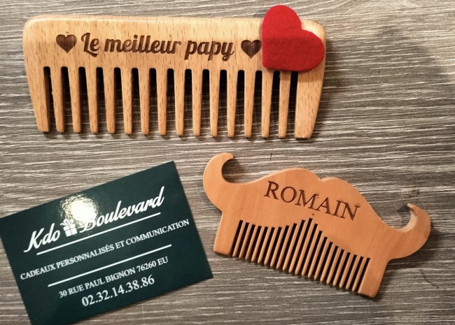 lot de 2 Peignes en bois personnalisable – Gravure sur-mesure (prénom, message ou motif)