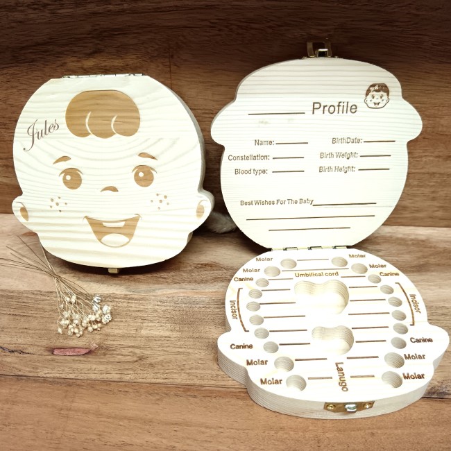 Boîte à dents de lait en bois personnalisée – garçon, Coffret souvenir enfant – Gravure prénom